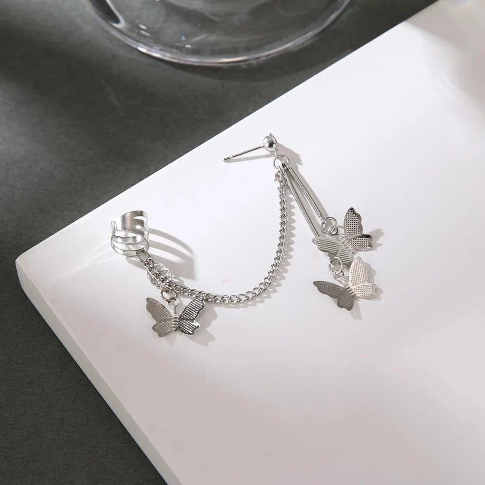 🦋 Stylish Butterfly Ear Cuffs ✨ | Hanging Design Jewelry for Girls